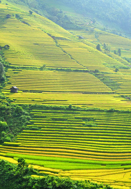 Thếgiới ruộng bậcthang vàng óngánh, mượtmà trong cồng của anh CuĐêm!