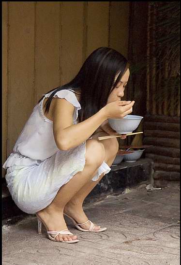 Đi utu các cô không nghe Dì giảng ah? thì bỏ thói quen cắn bú vỉa hè chứ sao? cô vào mẹ nhà hàng mà ăn.