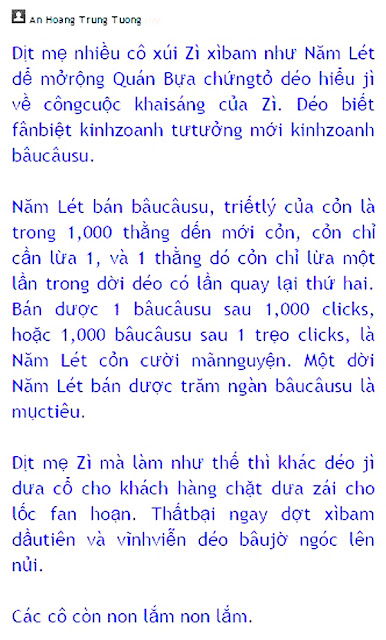 Anh thì vưỡn hóng quán đều nhưng hầu như ko tham za chưởi nhao nữa vì nhiều lí zo. Zưng có một lí zo kĩ thuật là thằng Lốc-gơ nài tính tương tác kém quá. Muốn bốt được cái cồng từ điện thoại, toét mắt luôn. Cho nên, nhiều khi thấy chị Zì kèn trùn nổ ùng oàng cũng muốn vô chỉnh alo cỏn cái zưng bật đt ra, thấy bất tiện quá, lại thoai.