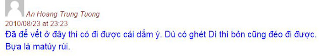 Anh Servus. Tôi cũng không đọc hết các comments nhưng tự nhiên đọc phải những comments của anh Lão Bựa khoe là gia đình danh giá và bạn bè hoành tráng cùng những lời thống thiết về Tổ quốc nên có tí ý kiên vậy thôi.