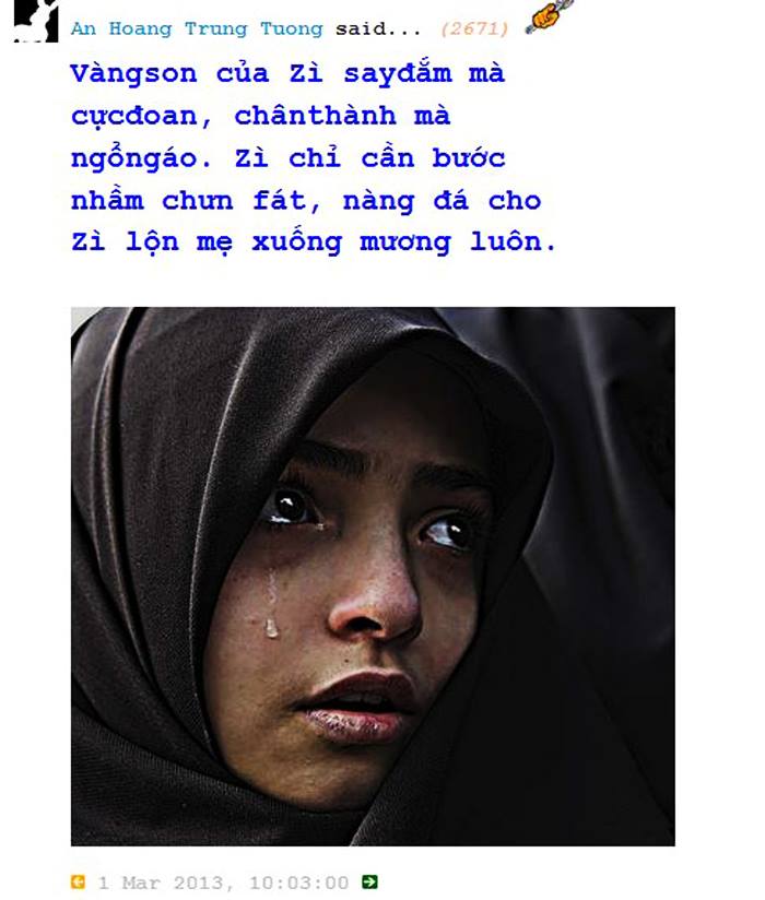 Nhân tiện Lão địt vào mõm con Tĩnh lở mồm long móng, chuyên nhai lại cóp nhặt gòi bam zư phá mả nhế.