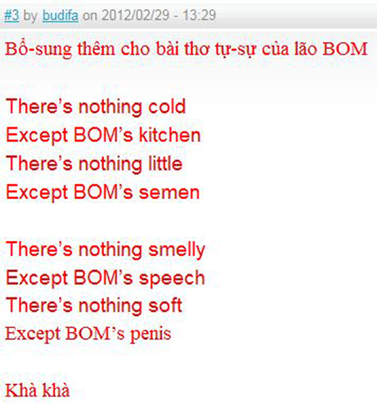 Vài dòng phântrần thế thôi chứ anh nào dám bấtlương đi chốngđối đườnglối của lãnhtụ vĩđại bấthủ.