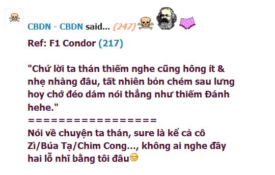 Thế quái lào mà Thiếm Đánh dù đáng bị phê bình, vẫn còn duyên dáng hơn một loạt cồng ỉa chảy của Thì Dùn. Thì Dùn ơi, tao lại mài đấy, đừng như bệnh nhân thổ tả thương hàn đã qua ngài thứ ba, hình hài teo tóp vì mất nước, phân chẳng có hột mà vẫn tiếp tục chảy mãi thế! Sao khi công bổ đấu thầu, sao hông đưa nhau vào Projects hay the likes, rồi thì thoảng ra update chút cho biết mài vẫn còn sống là được rùi. Mât tài nguyên của quán nhiều rất quá!