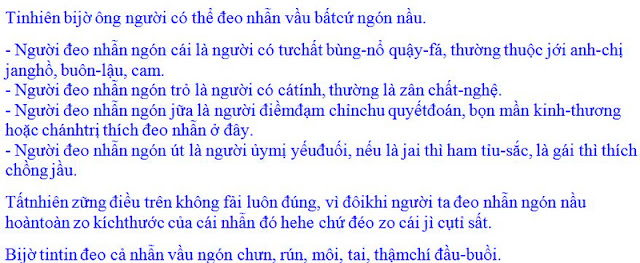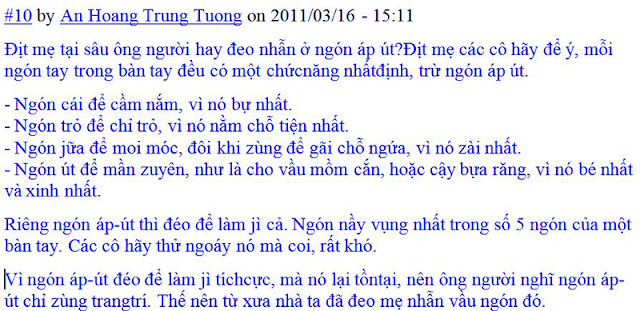 Nhân chuyện đeo đổng tay nào, vào chuyện nhẫn cưới - nhẫn đính hôn, khai quật cồng này đọc tham khảo nhắng nhắng cho vui: