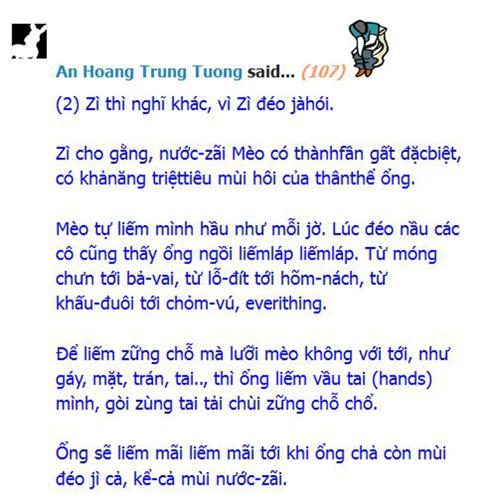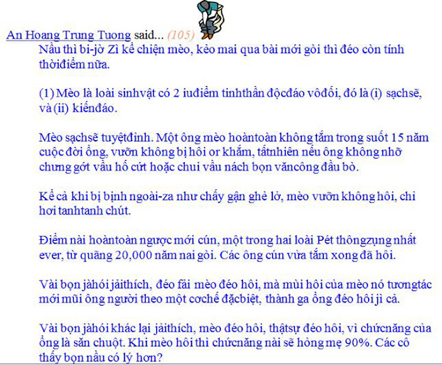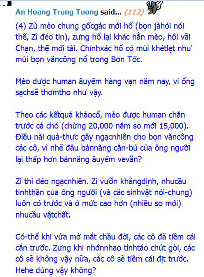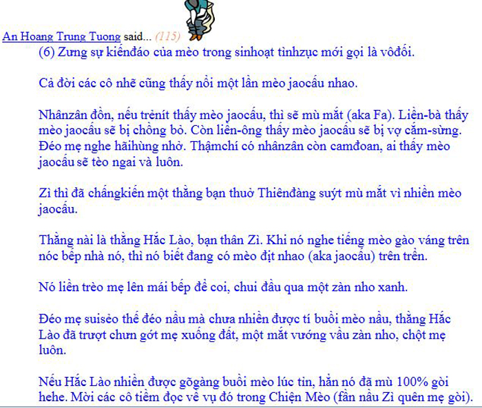 hehe. Cô Thì Giùn bình phương nói đúng rồi đó. Anh với bản tính của một ông lừa nên anh rất nhanh giở mặt và ăn cháo đái bát. Bằng chứng là anh vừa xin tài liệu con Mèo Tôm up dưng quai lại a vả con đó bôm bốp đkm bôm bốp vì hành vi thiếu công chính.