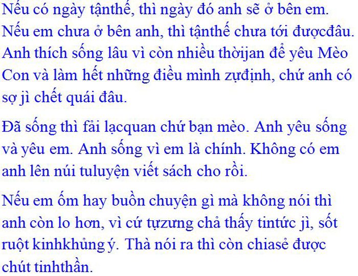 “Anh yêu sống và anh yêu em. Anh sống vì em là chính...”