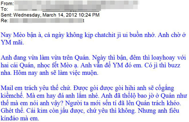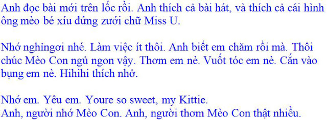 Đọc những dòng thư mà Zì gửi cho Mèo Con thấy Zì yêu thật dễ thương quá. Zì giỏi văn nên viết nghe hay như vậy hay khi yêu người ta tự nói ra dược những câu nói nghe ngọt ngào như vậy hả Zì ?