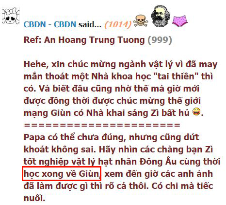 @ cô Franker Lee : mấy anh bác học Nga mà Zì đề cập, trung úy không biết chắc ai là Do Thái hay không, riêng anh Kurchatov thì trung úy khẳng định là Nga gộc, không phải Do Thái. Vì trung úy là người quyen của gia đình này.
