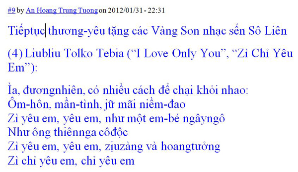 An Hoang Trung Tuong said... (16) ờ anh đả hiểu , anh thấy chữ mới nài mà biên thư pháp là đẹp lắm đới , có nét tương tự chữ Xô Liên hệ hệ.