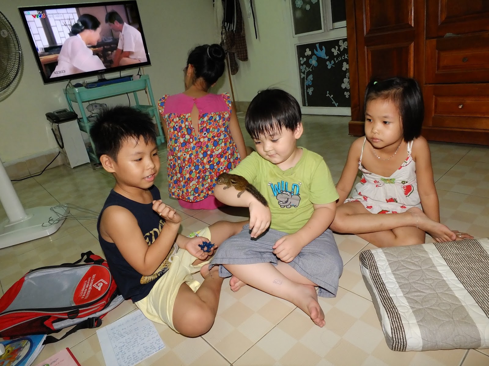Dám Giùn kia, dang dội trên dầulâu một thứ gì dó. Nghe không rõ lắm, cơ mà cũng kíchdộng.
