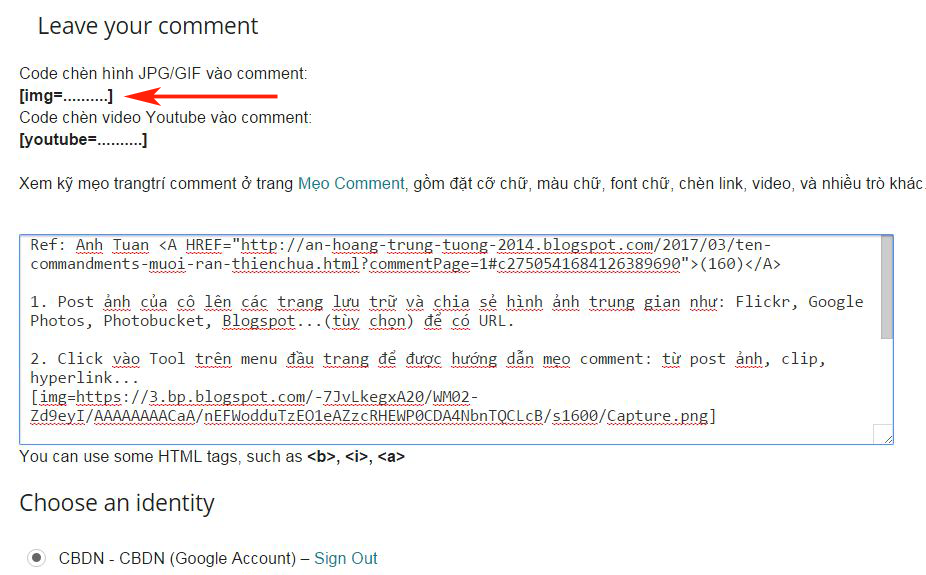 *** Ở ngay phần PostComment, cũng có hướng dẫn vắt tắt riêng cho cú pháp post ảnh (resige mặc định) và clip nhé: