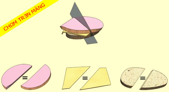 Ông dịnhlý ý phán zằng, nếu chúng mình có hai mảnh bánhmì và một cục thịt, thì chỉ bằng một cú chém, chúng mình luônluôn cothe chia-dều cả bánh và thịt.