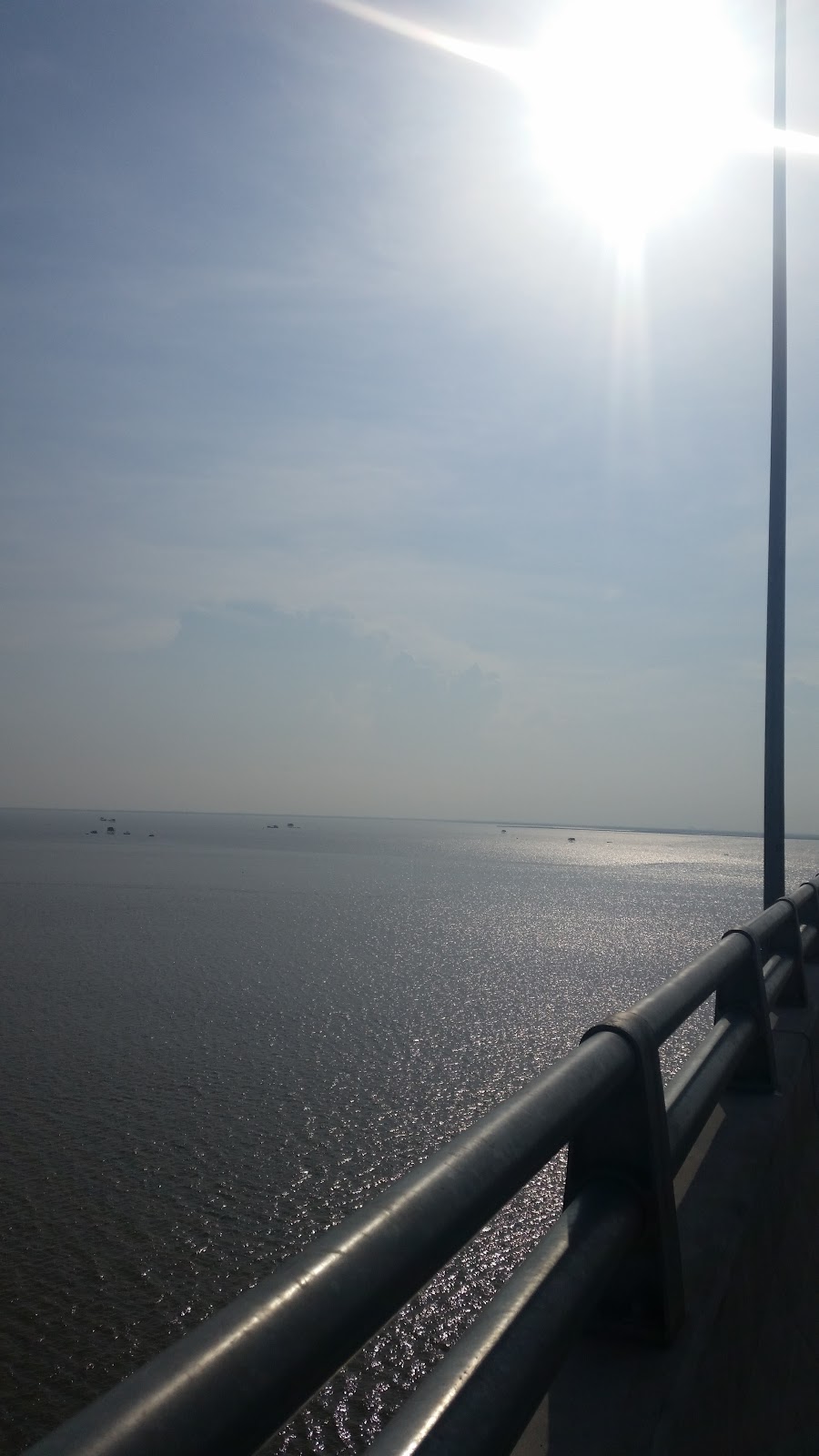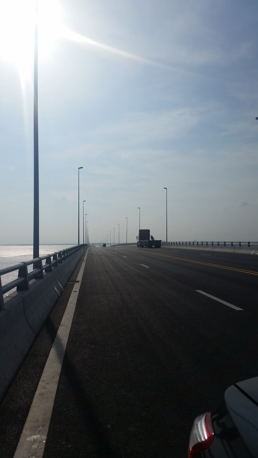 Có lẽ cầu vượt biển không giành cho bần nông, thiết kế chỉ để xe bương chạy thôi, đầu cầu cũng có cảnh báo đề phòng gió tạt ngang mà