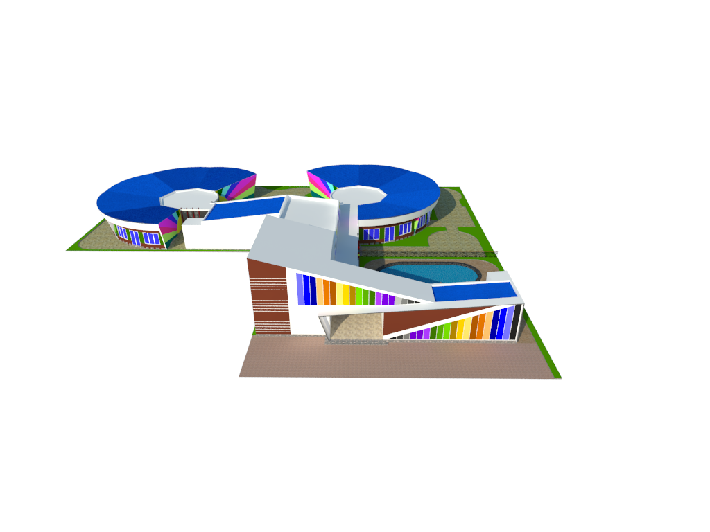 Layout trường nên sửa lại, tậptrung vào côngnăng sửdụng và tăng diệntích cho cây xanh. Hai cái đơn-nguyên tròn-tròn xâydựng sẽ tốn-kém, khó sửdụng và cũng không đẹp. Cứ xây vuông-vức, bên trong layout phònghọc sẽ dễ và không phí diệntích.