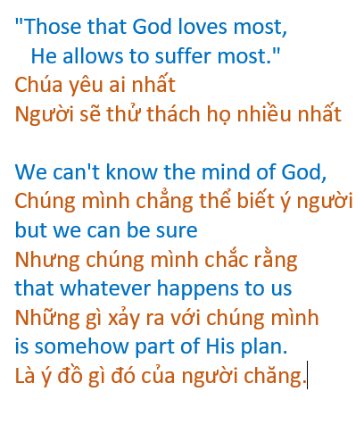 Tôi vẫn luôn luôn kính Chúa - và thật lòng mến đạo, như vẫn. Nhưng sau tất cả mọi biến cố trong đời tính đến lúc này, và sau nhiều chuyện vô đạo những người là con Chúa đã làm mà tôi chứng kiến - hoặc thậm chí chính tôi là nạn nhân trực tiếp, tôi chỉ tin vững chắc vào chính bản thân mình. Dù sao, cũng chúc mừng những người có Đức tin mà tôi không có (đã mất).
