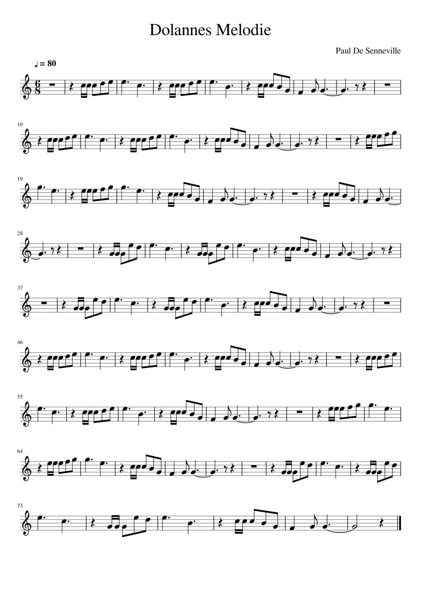 Dây là bản Dolannes Melody soạn cho Chôngbét, cơmà con nào dánh các tạng kèn-sáo như c-flute, oboe, clarinet, etc, zùng dược tuốt.