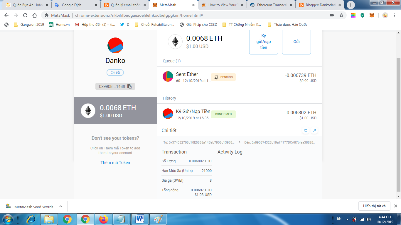Em Mỡ vừa tạo ví ETH bằng MetaMark,