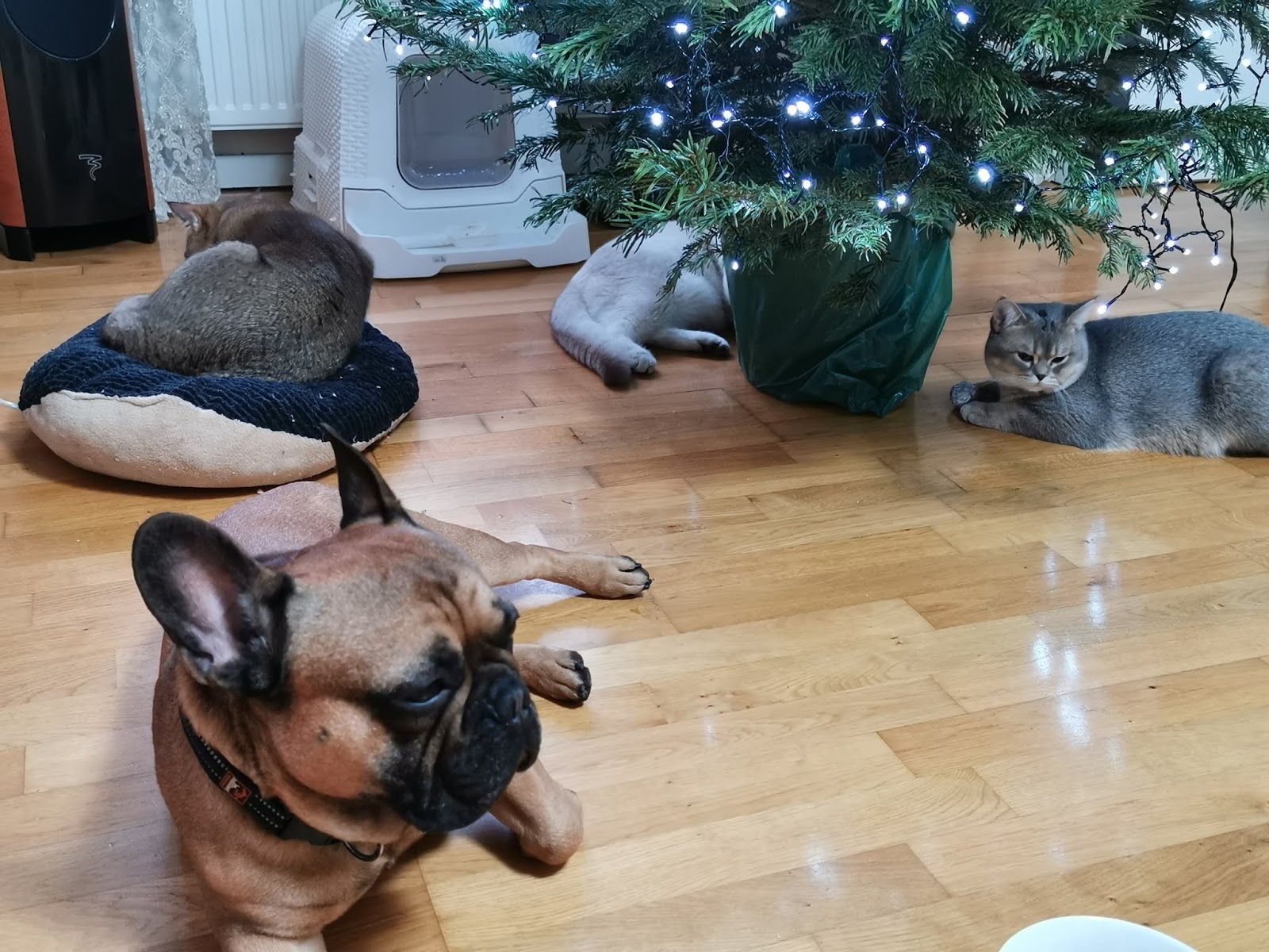Zưới câythông, nhânzân theo thông-lệ thường khoe gựu và những hộp quà giángsinh, Tôi chả có đéo gì ngoài Ôngchó - Ôngmèo!