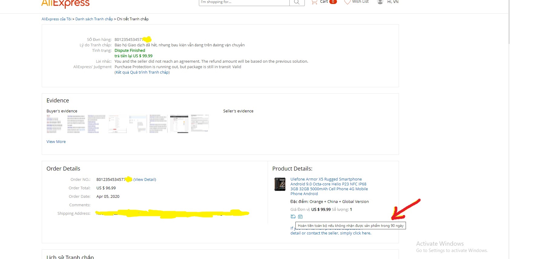 Sau dòng dã 1 tháng đòi tiền, thì bên ý Ali đã refund lại,