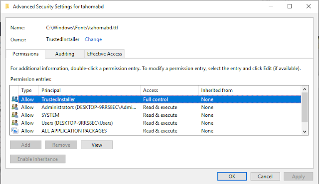 A vào check font của Chorme thì thấy giờ không còn font Tahoma nữa, có lẽ do font mới a cài nó không có cái Trustedinstall full control nên Chorme nó đéo nhận chăng