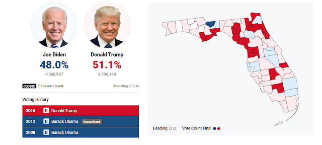 Texas: Kiểm phiếm 80%, tỉlệ 51-58 nghiêng về Trump.