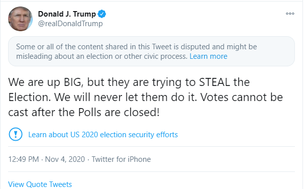 Đã thắng đâu các cô. NC, GA vẫn căng như dây đàn giờ chót. Michi, PA, Wil còn rất nhiều phiếu chưa kiểm, rất nhiều phiếu từ đám bầu cho Biden sợ chết nên bỏ qua mail.